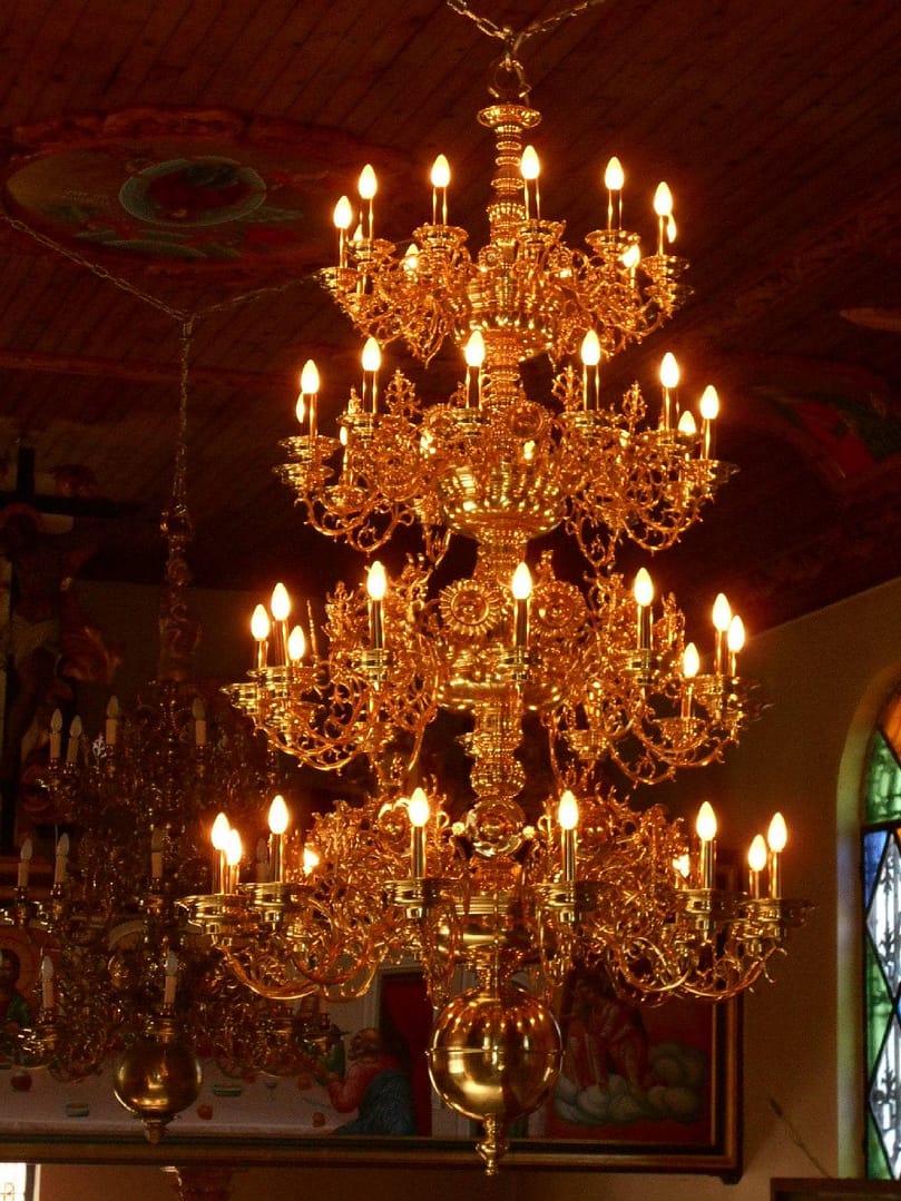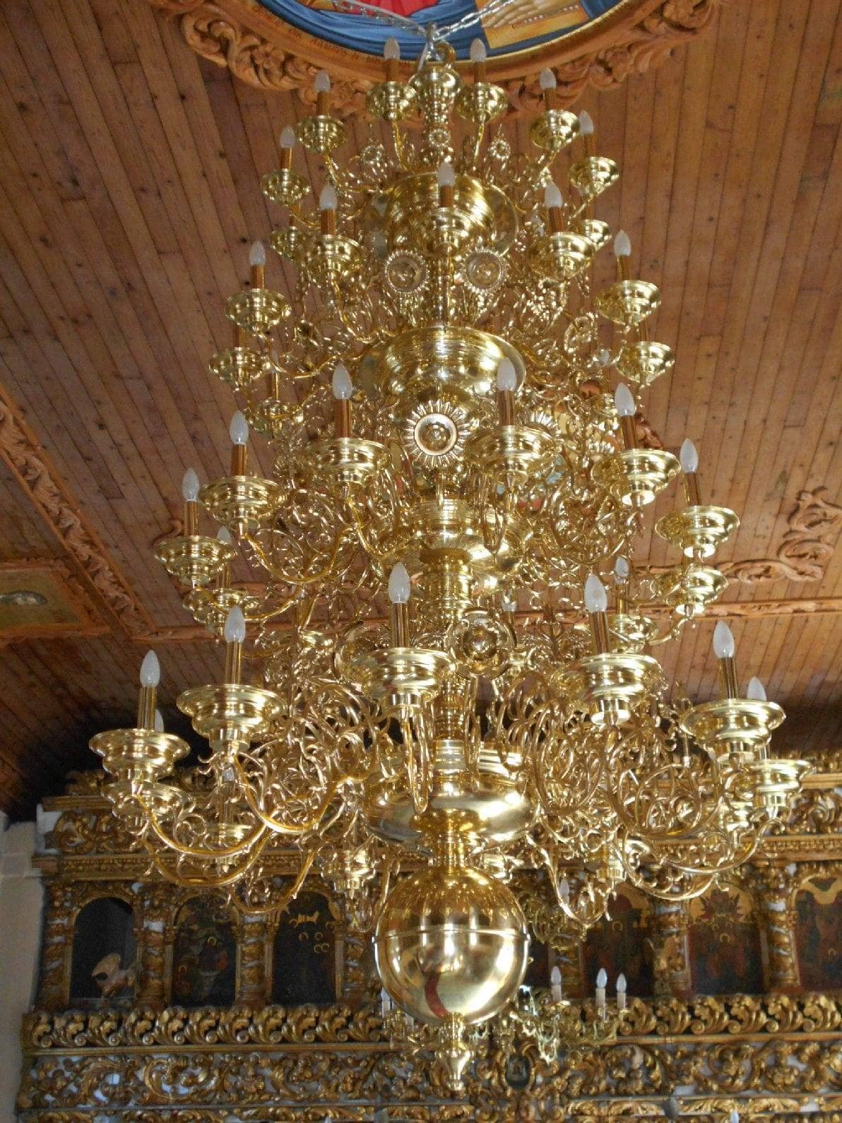 Πολυέλαιος ορειχάλκινος αγιορείτικος. Κατασκευάζεται σε οποιοδήποτε μέγεθος μας ζητηθεί.