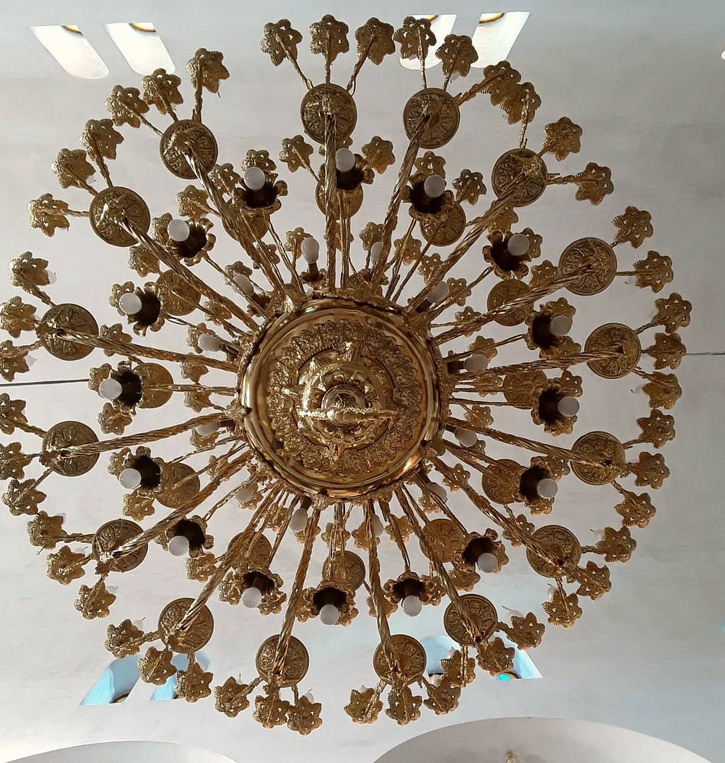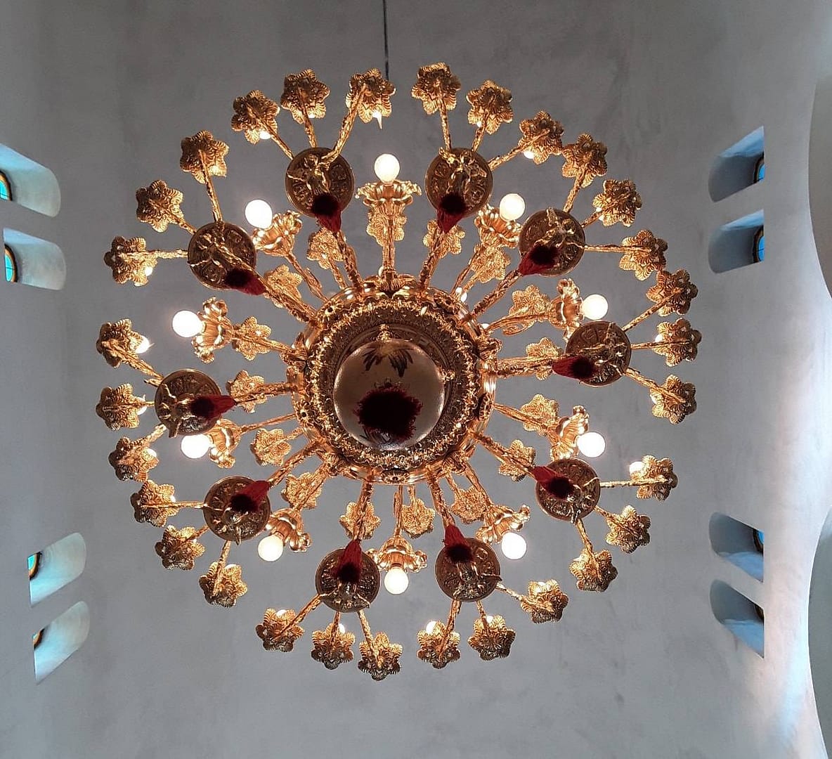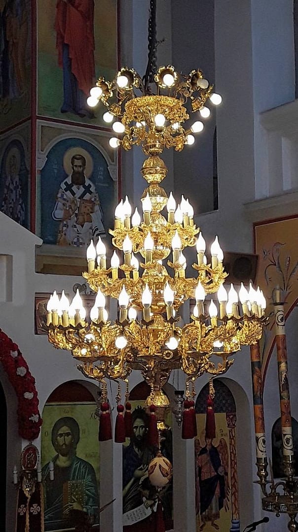 Πολυέλαιος ορειχάλκινος βυζαντινός ανάγλυφος μασίφ. Κατασκευάζεται σε 3, 6, 12, 28, 40, 50, 60, 80, 120 και 200 φώτα.