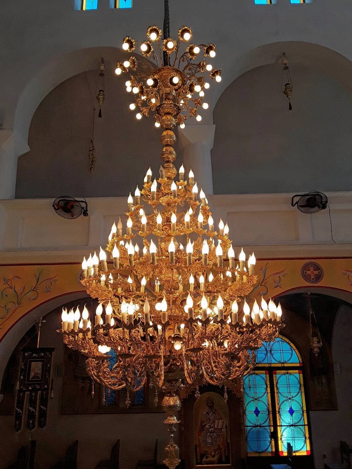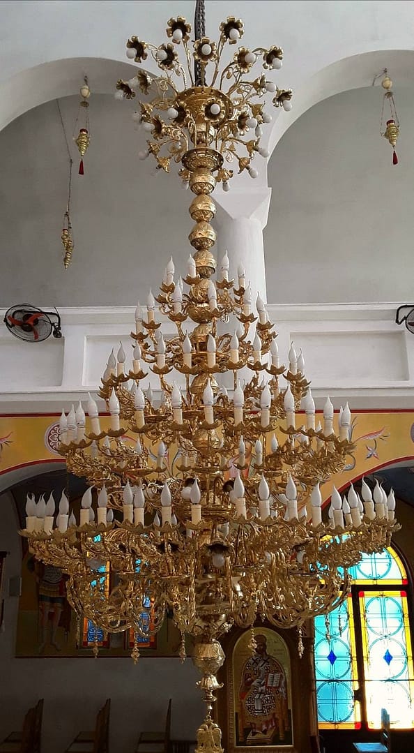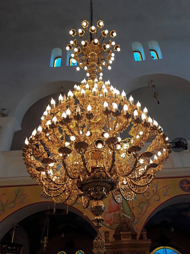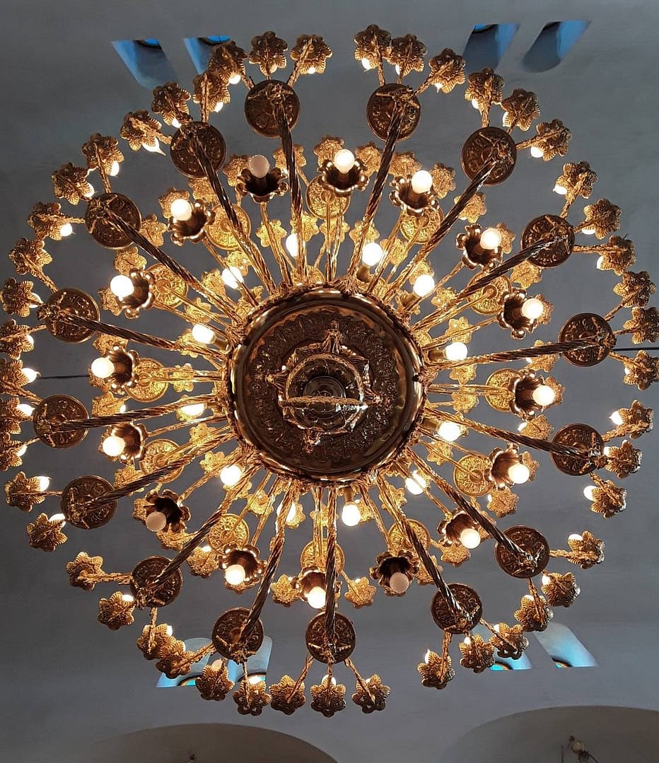 Πολυέλαιος ορειχάλκινος βυζαντινός ανάγλυφος μασίφ. Κατασκευάζεται σε 3, 6, 12, 28, 40, 50, 60, 80, 120 και 200 φώτα.