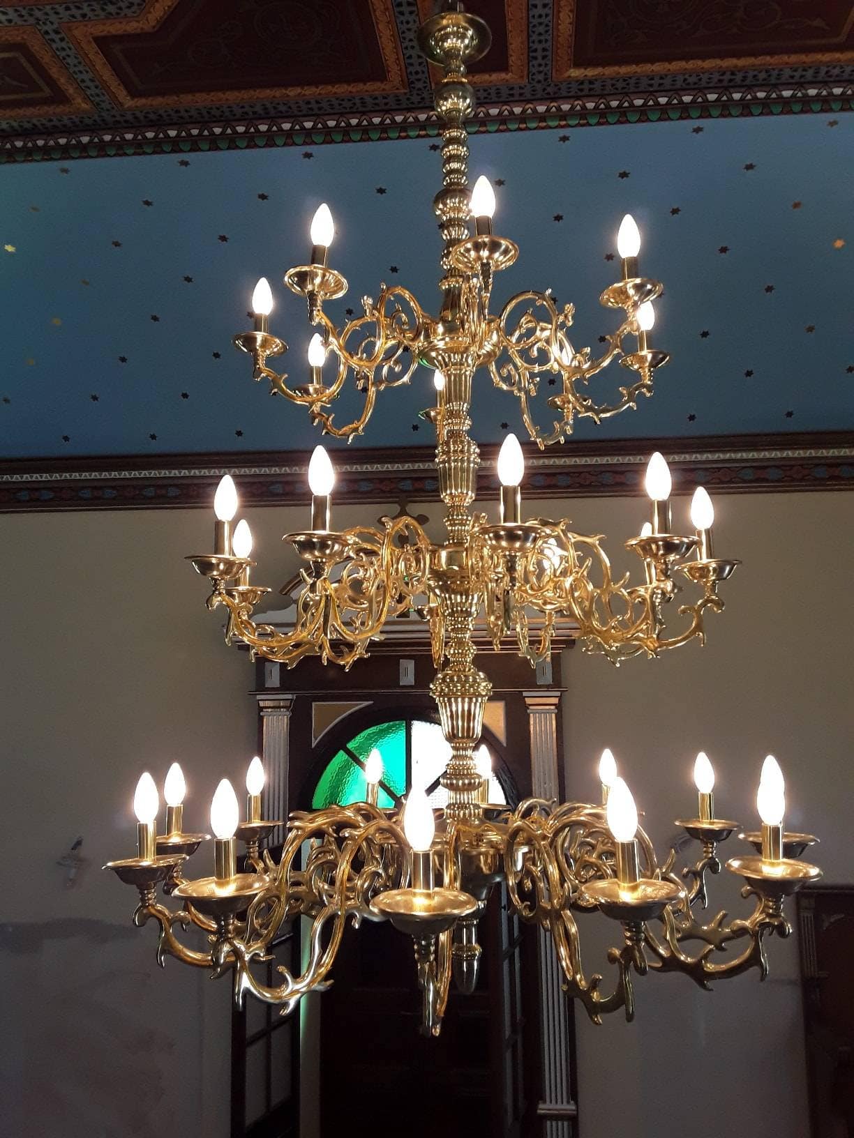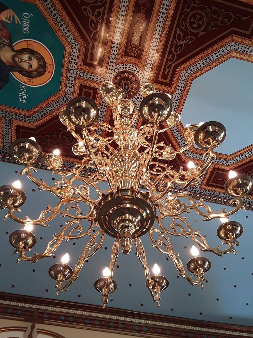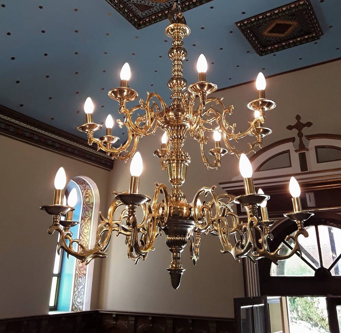 Πολυέλαιος παλαιού τύπου ορειχάλκινος μασίφ. Δυνατότητα κατασκευής σε οποιοδήποτε μέγεθος (1 έως 6 στάσεις) και αριθμό λαμπτήρων μας ζητηθεί.